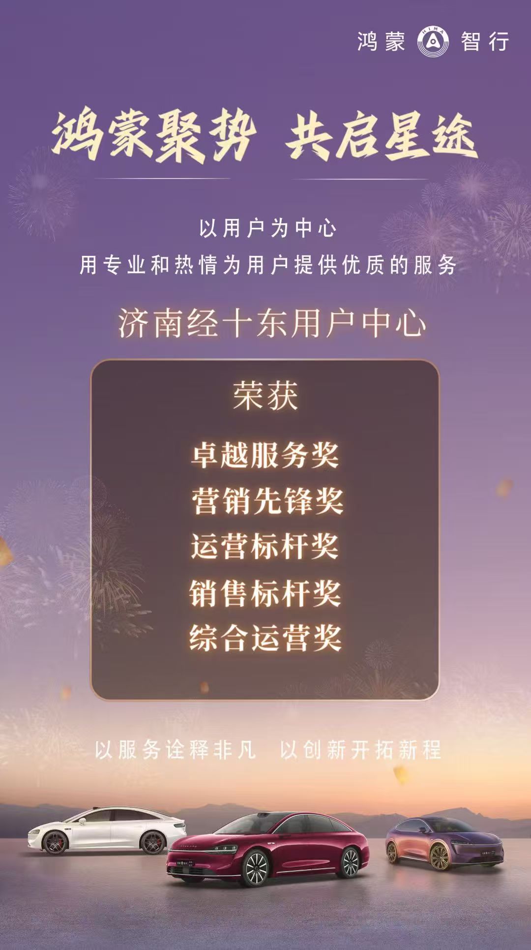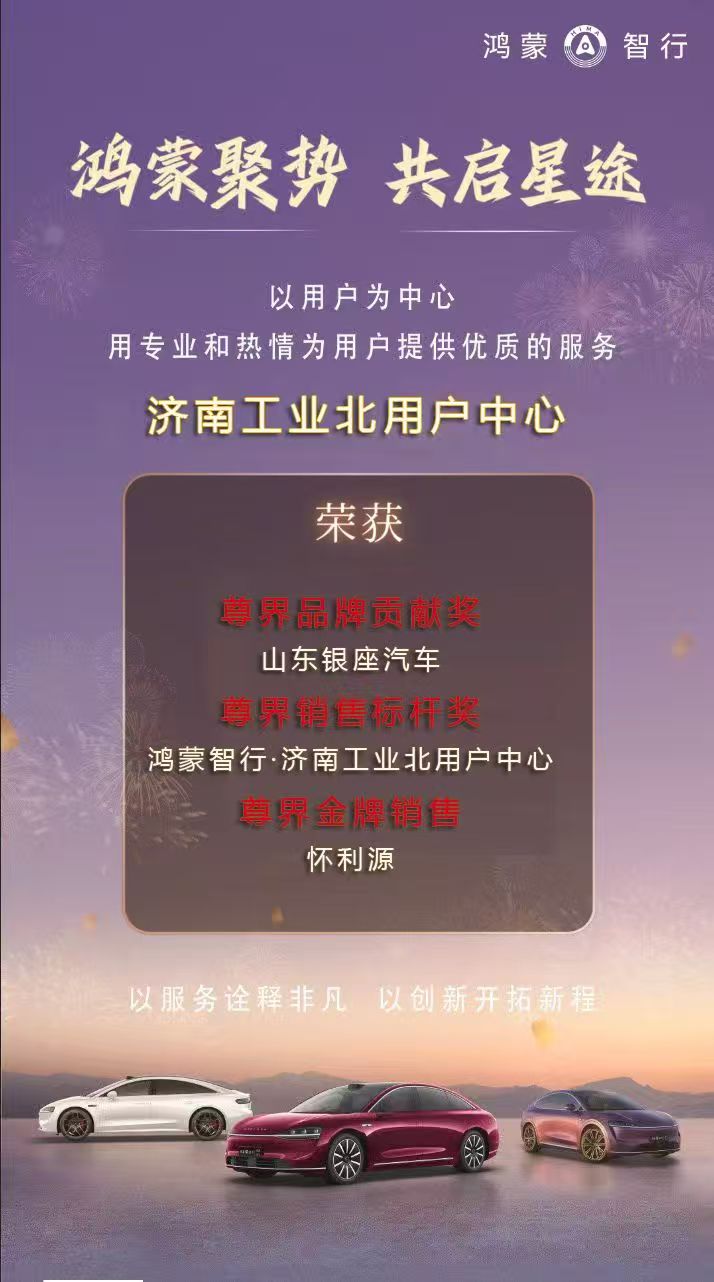 這份滿載榮譽的“期中答卷”,是銀座汽車鴻蒙智行濟南雙店銳意進取的見證,更是邁向更高峰的起點。銀座汽車鴻蒙智行煙臺北京南路店也正蓄勢待發(fā),以厚積薄發(fā)之勢夯實基礎(chǔ)。未來,銀座汽車鴻蒙智行三店將攜手共進,以精準運營為引擎,以用戶需求為導(dǎo)向,在創(chuàng)新服務(wù)的賽道上合力突破,共繪銀座汽車新能源賽道輝煌篇章!